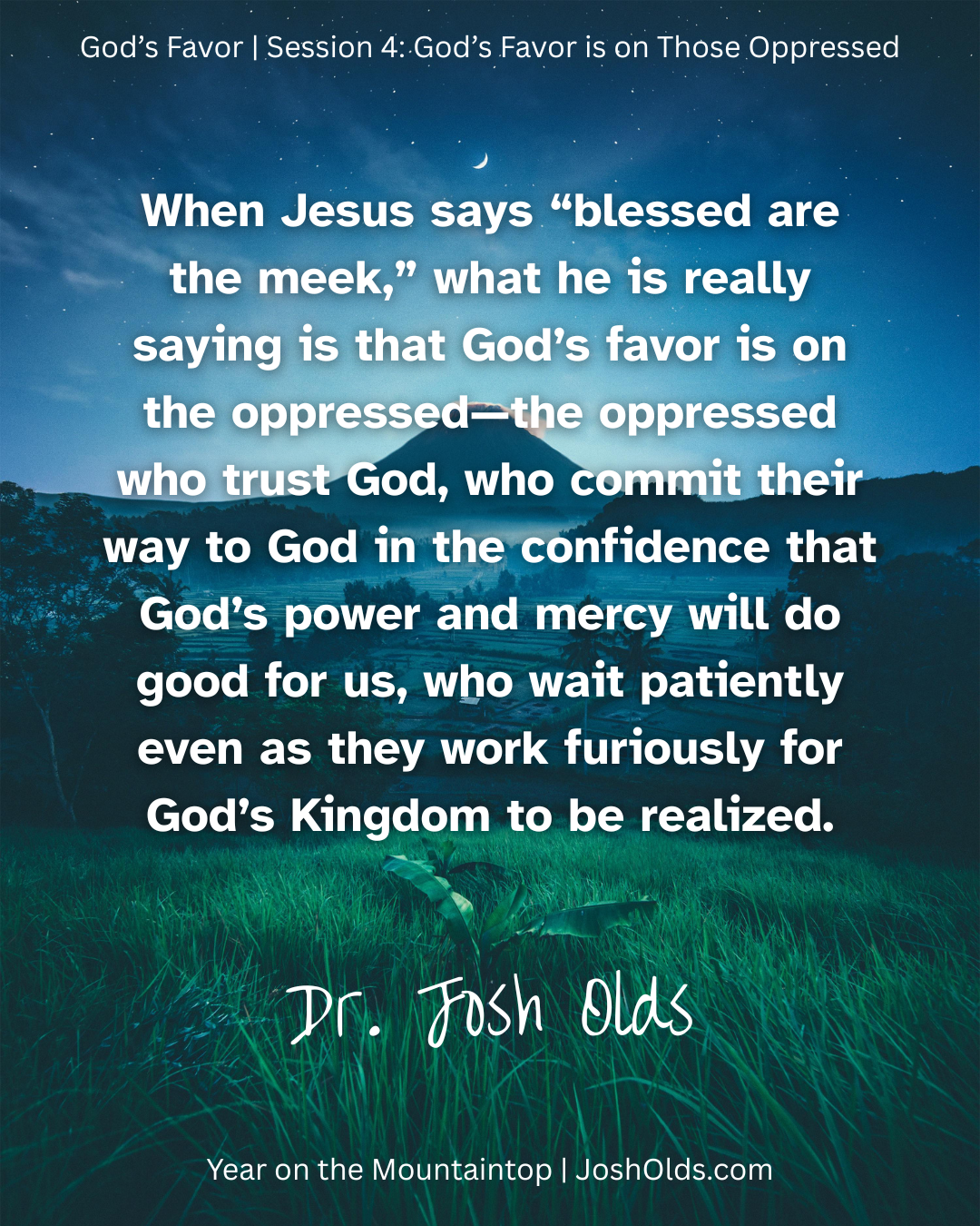 In this session, Dr. Josh Olds unpacks the third Beatitude: “God’s favor is on the meek, for they will inherit the earth.” Rather than reading meekness as weakness or passivity, Josh reframes it as the strength of the oppressed who continue to trust God in the midst of unjust systems. Drawing on Moses’ life, he shows that meekness is not being a pushover, but a deliberate, faithful endurance in circumstances you did not choose, grounded in the conviction that your story is part of a larger work of God. Josh connects Jesus’ words back to Psalm 37, where the humble are promised the land and urged to “do good in the face of evil” while trusting God for vindication. For an occupied, land-stripped people in Jesus’ day, this Beatitude sounds like a promise of restoration and a direct challenge to empire: the powers may dominate now, but God’s kingdom will outlast them. From there, Josh explores how meekness becomes a posture of both patient waiting and active resistance—rolling our anxieties, fears, plans, and even our anger onto God, while working furiously for God’s kingdom in the middle of the world’s empires. Ultimately, this episode invites listeners—especially those who feel marginalized, powerless, or worn down—to hear Jesus’ words as good news: God’s favor rests on the oppressed who trust, endure, and refuse to mirror the violence of the systems that harm them. Their patient, hopeful faith is not forgotten. In God’s time, the meek will inherit the earth, and the quiet strength of the kingdom will overturn the loud, brittle power of human empires.