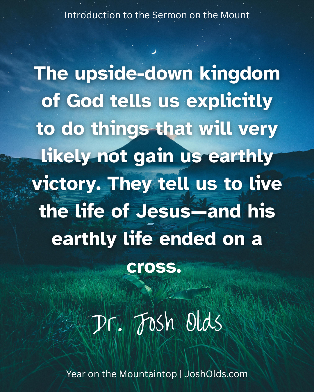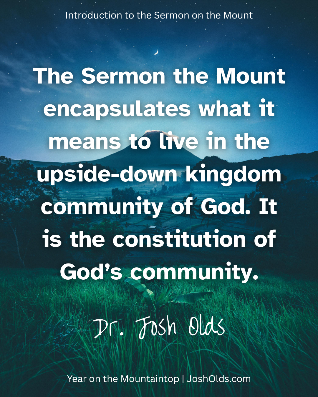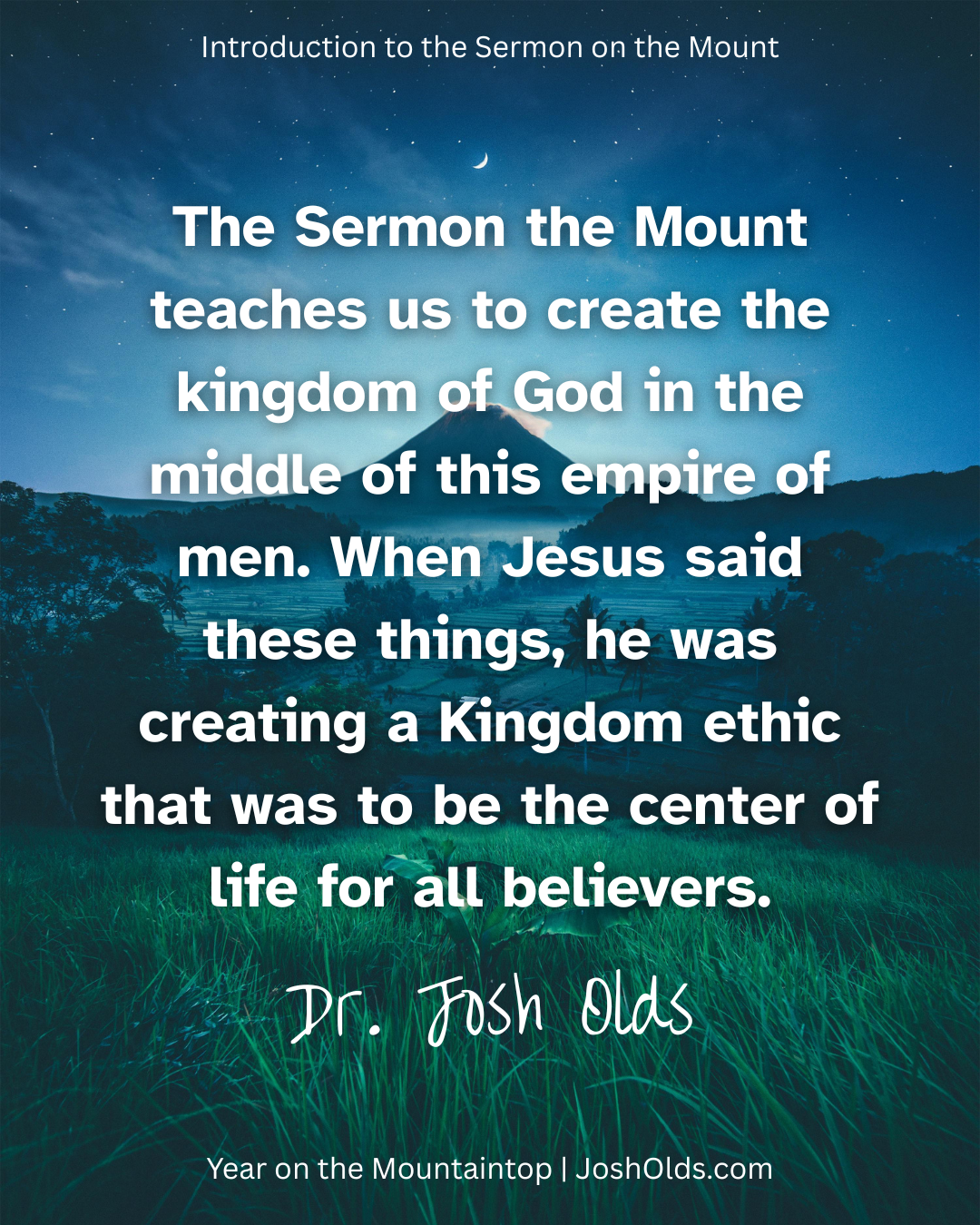 Welcome to Year on the Mountaintop, a transformative 52-week journey through the Sermon on the Mount—the most influential, challenging, and misunderstood teaching of Jesus. In this foundational episode, Dr. Josh Olds introduces the radical kingdom ethic at the heart of Jesus’ message and shows why the Sermon remains essential for discipleship today. Drawing on Scripture, theologians like Augustine, Chambers, and N.T. Wright, and the narrative structure of Matthew’s Gospel, Josh explains how the Sermon on the Mount reshapes our understanding of faith, justice, obedience, and spiritual formation. This introduction establishes the Sermon as the central teaching of Jesus, the constitution of God’s upside-down kingdom, and the call for every believer to live a Spirit-empowered, counter-cultural life that reflects the character of God.